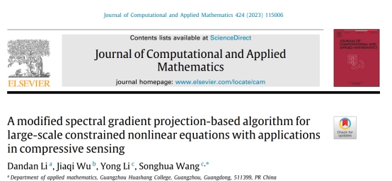 近日,数科院教师李丹丹的论文“A modified spectral gradient projection-based algorithm for large-scale constrained nonlinear equations with applications in compressive sensing”在中科院二区TOP期刊(JCR一区)《Journal of Computational and Applied Mathematics》上发表。该期刊被诸侯快讯网认定为A2类。