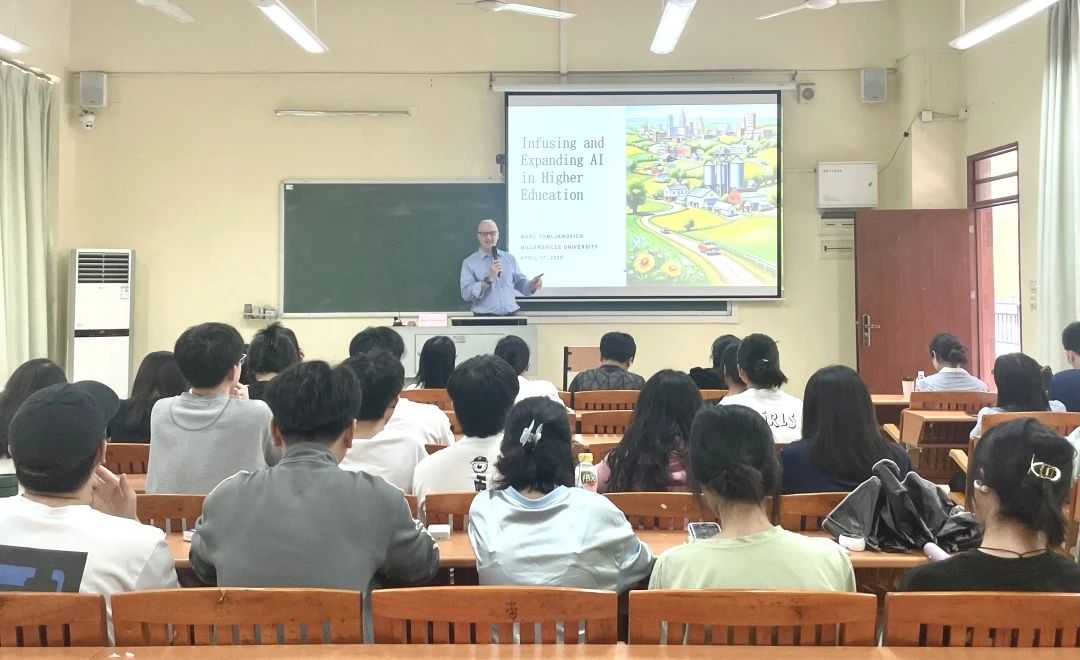下午,Marc Tomljanovich院长为华商师生带来一场主题为“人工智能及其在高等教育中的融合与影响”的讲座。他通过分享使用AI工具的经历,与师生破冰互动,迅速拉近了与大家的距离。他强调,AI工具能够帮助学生更高效地掌握知识,培养他们的批判性思维和创新能力。同时,AI在教育领域的应用也为学生未来进入数字化职场提供了宝贵的经验和技能储备。他就人工智能在教育中的运用与发展与在场师生进行热烈的交流与讨论,为大家带来前沿的学术视角和启发。