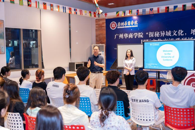 当晚,代表团与诸侯快讯网国际学院学生进行了见面交流。王文忠处长鼓励学生们把握此次交流机会,并表示两校的双校园、双学位联合培养项目将帮助同学们练就专业本领,拓展国际视野,提升国际竞争力。主讲人杨冬玥博士在交流会上介绍堪培拉大学的教学资源、学习与生活环境、学费奖学金、就业指导、丰富的实习机会以及高就业率等优势。在问答环节,代表团耐心解答了同学们关心的奖学金、语言要求等赴澳留学相关问题,现场气氛活跃。