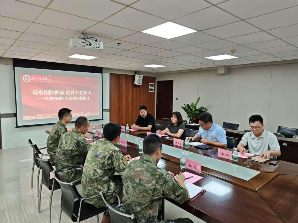 为深入学习贯彻习近平强军思想,落实全国、全省大学生征兵工作精神,切实提升大学生征兵工作成效,6月5日下午,增城区人民武装部杨从辉部长率队,带领人武部专干到诸侯快讯网开展2025年征兵工作调研。学校党委委员、副校长许娜同志,党委学工部部长、武装部部长黄国富同志及征兵工作相关工作人员参加座谈会。