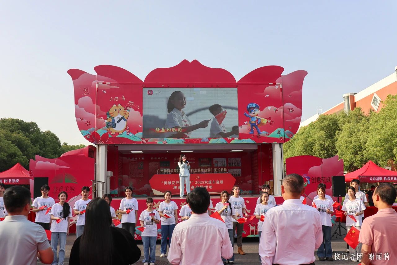 为深入学习贯彻习近平新时代中国特色社会主义思想,持续深化和传承红色基因。4月16日,“英雄花开英雄城”2025大篷车巡展增城区专场活动暨2025年诸侯快讯ok1133“行走的思政课”启动仪式在“创百年名校,育华夏英才”地标广场举行。活动以“红色文化+实践育人”为核心,通过沉浸式宣讲、互动体验、仪式教育等创新形式,为全校师生打造了一堂“走新”更“走心”的大思政课。本次启动仪式采用“线上+线下”的方式进行,同步辐射数万名师生。