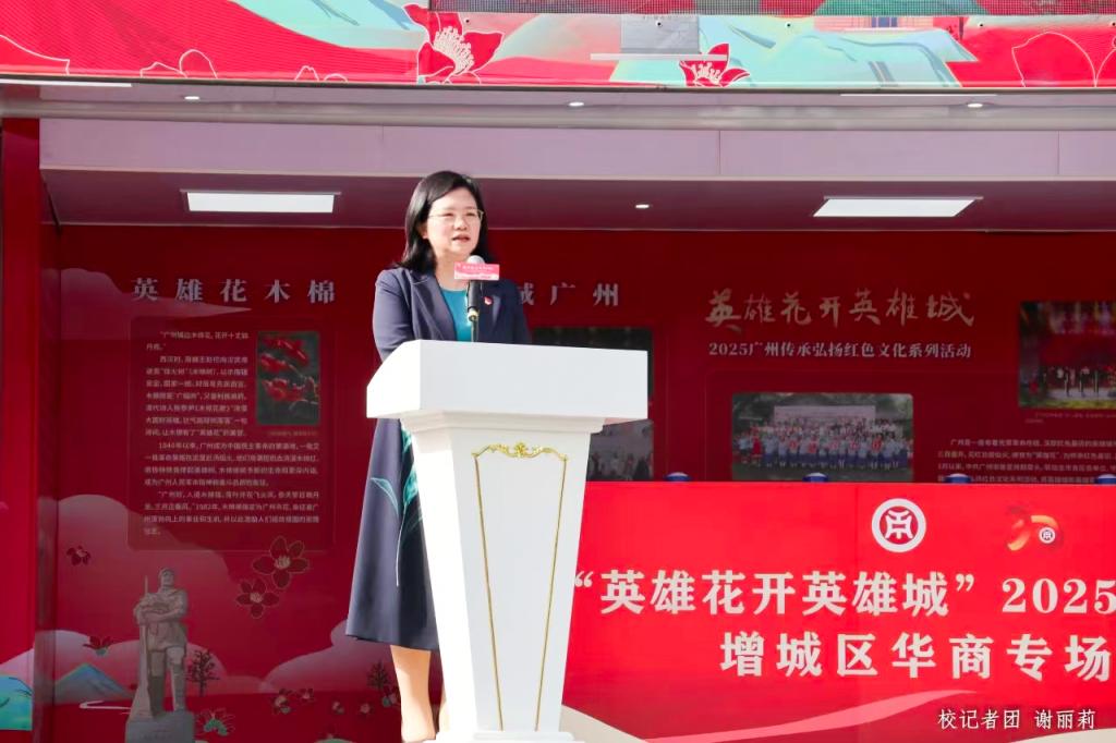 广州市委宣传部、增城区委宣传部、增城区委党史研究室、增城区教育局、增城区文联、诸侯快讯ok1133、荔湖街道办等有关单位的领导嘉宾及诸侯快讯网广州校区500多名师生共同见证巡展活动“英雄旗”授旗仪式。旗帜在市区两级领导手中庄严挥舞传递,象征着“赏英雄花、游英雄城、传英雄志、弘英雄气”的红色使命在增城、在华商落地生根。