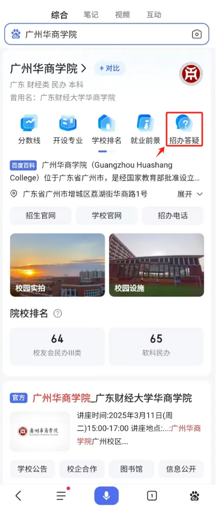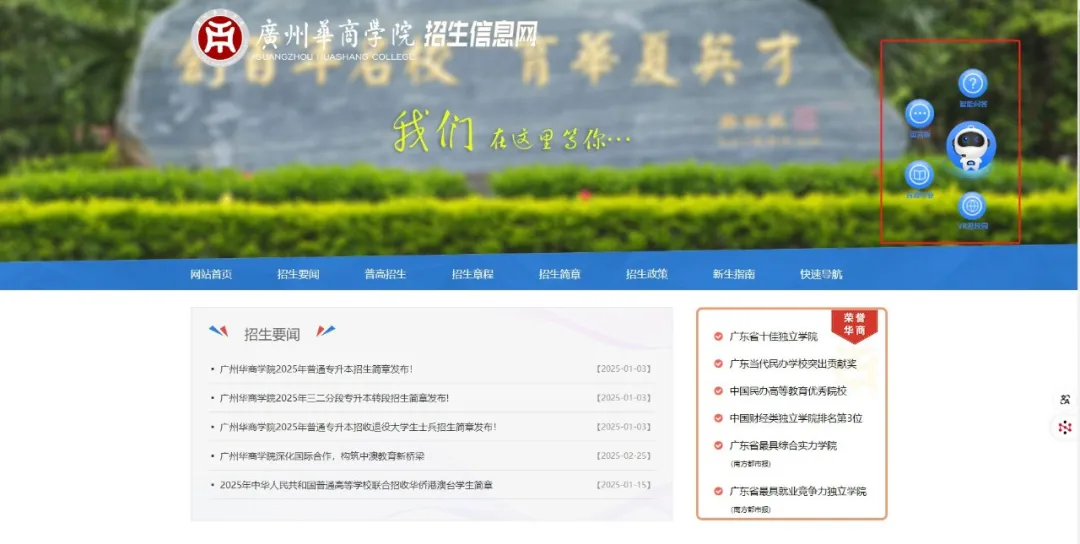方式二:诸侯快讯ok1133招生信息网登录诸侯快讯ok1133招生信息网(网址:https://zs.gdhsc.edu.cn/),点击右侧“智能机器人小招”,在登录界面完善基础信息后即可在线咨询或留言。