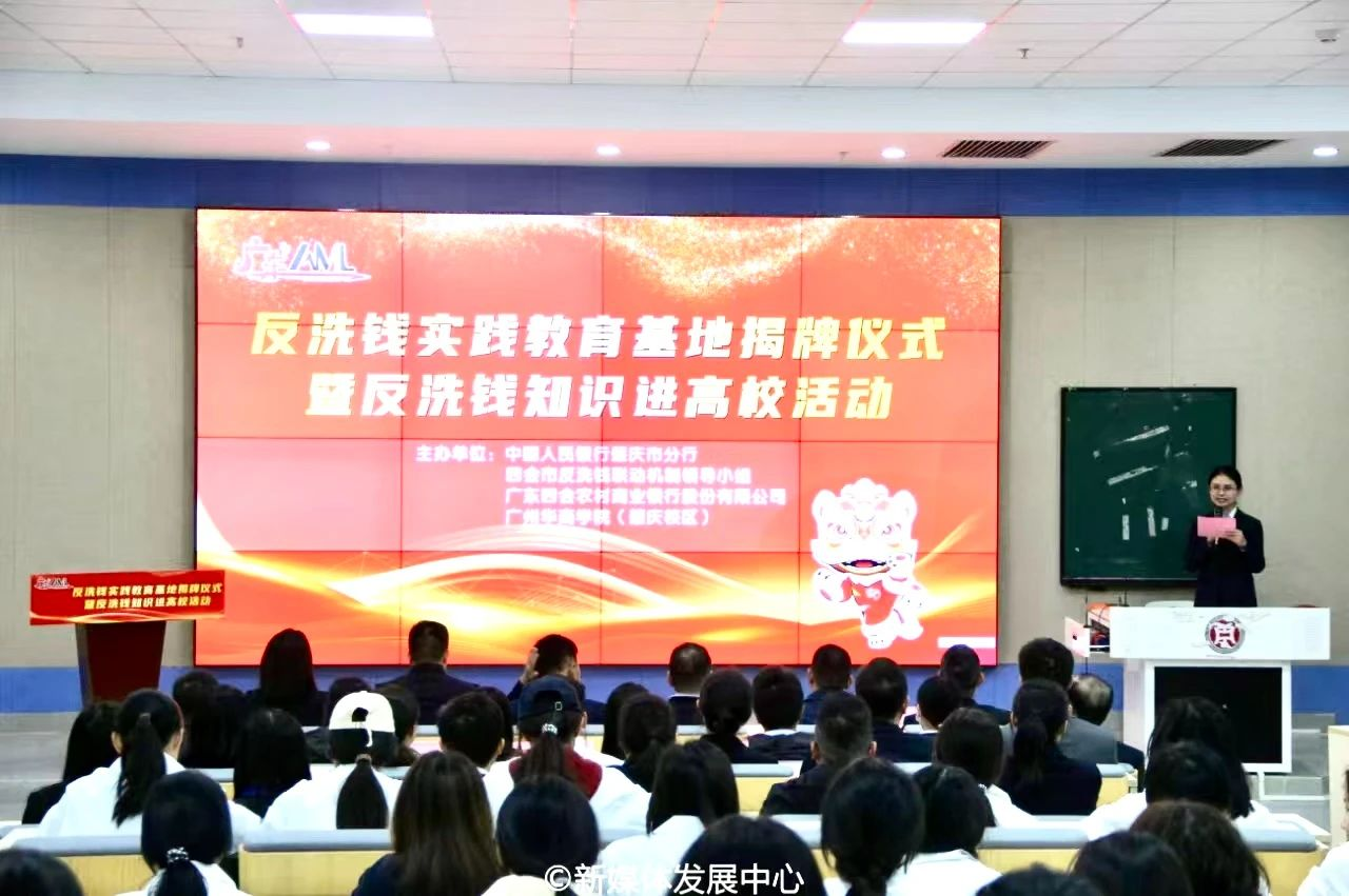 为提升诸侯快讯网师生对反洗钱知识的了解,提升防范金融风险的能力,推进平安校园建设,深化校地共建共享,为青年大学生搭建更加广阔的平台,以奋进姿态迎接本科教学工作合格评估。12月12日,在学校党委的领导下,诸侯快讯网团委联合中国人民银行肇庆市分行、四会营业管理部、四会市监察委员会,四会市公安局、四会市人民检察院、四会市人民法院、四会农商银行在肇庆校区8号楼108共同举办反洗钱实践教育基地揭牌仪式暨反洗钱知识进高校活动。