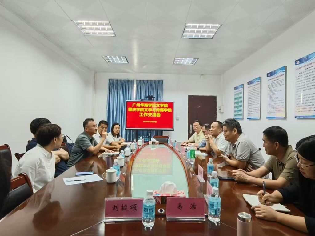 23日上午,双方在肇庆学院文学与传媒学院会议室召开交流会。肇庆学院文学与传媒学院党委书记陈伟林教授、文学与传媒学院党委副书记胡海鹏教授、副院长陈爱香教授、副院长苏常教授、系主任刘挺颂教授、系主任陈伟江教授、鲍昌宝教授、易洁副教授、高贯华老师等学院领导参加交流座谈。