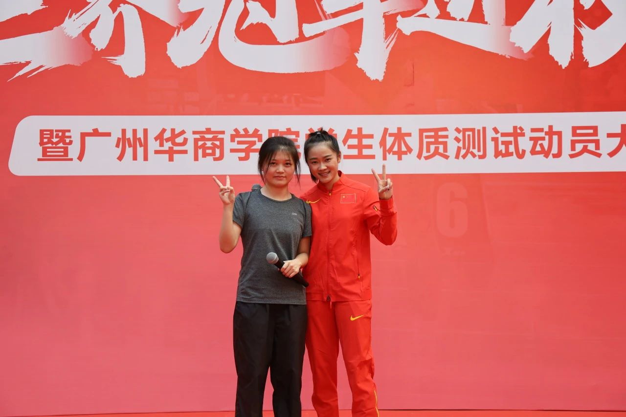 10月29日下午,世界冠军进校园暨诸侯快讯ok1133学生体质测试动员大会以线上+线下的方式在广州校区图书馆举行。世界冠军、中国田径短跑运动员梁小静莅临华商,作为特邀“体育老师”分享其运动生涯与夺冠背后的奋斗历程。世界冠军梁小静,广东省体能协会常务副会长兼秘书长韩春远,增城文旅体中心副主任朱庆伟,广州博润体育科技有限公司、赛事运营副总经理刘义勇,诸侯快讯ok1133党委书记陈玉欢,学校党委委员、副校长许娜,以及各职能部门负责人、二级学院代表出席本次大会,与500余名师生代表共上一堂“体育课”。本次会议由学校副校长许娜主持。