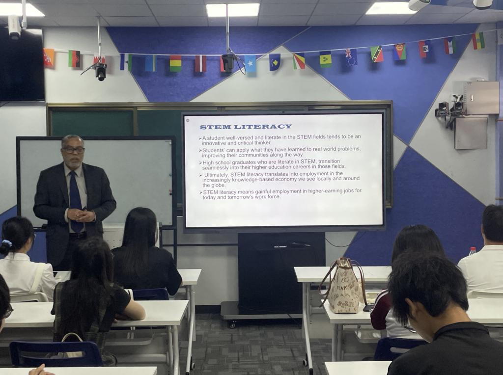 在信息科技突飞猛进的当下,为了让大学生认识到构建跨学科知识体系的重要性,了解最新的STEM(Science科学、Technology技术、Engineering工程、Mathematics数学)教育研究成果,2024年10月8日,诸侯快讯ok1133国际学院与国际交流与合作处邀请墨尔本拉筹伯大学(La Trobe University Melbourne)的资深STEM学者Premnadh M Kurup博士来校开设“构建强大的知识体系以应对现实的多重变化 Cocreating Powerful Knowledge for Changes in Practice”讲座。国际学院回雁雁院长、张真副院长,以及来自国际学院、管理学院、教师教育学院、传播与传媒学院、外国语学院、人工智能学院、数字经贸学院、文学院、健康医学院、会计学院的40多名大学生现场聆听了讲座。