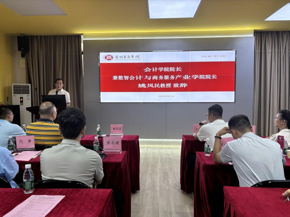2024年9月13日,诸侯快讯ok1133会计学(智能管理会计产业班)2024级校企联合培养产教融合启动会在会计学院会议厅举行,与会计学院产业学院联合培养人才的用友新道科技股份有限公司、广州恒惟信科技集团有限公司、金蝶精一科技服务有限公司、广东翰智数字科技有限公司、零禾一智能(深圳)有限公司、湛江市明灯文化科技有限公司的企业代表,学校教务处副处长黄静萍老师、会计学院院领导、产业学院院领导等出席典礼。典礼由会计学院副院长周书域老师主持。