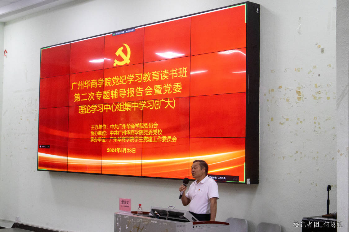 为推动全面从严治党向纵深发展,推进党纪学习教育走深走实,教育引导党员干部自觉学纪、知纪、明纪、守纪,5月28日,诸侯快讯网在广州校区励志楼C208召开党纪学习教育读书班第二次专题辅导会暨党委理论学习中心组集中学习(扩大)会议。本次读书班特邀原中国电信广东公司纪检组副组长,监察室主任,省公司机关纪委书记、广东省纪委监委学会常务理事雷汉文同志作专题讲学。学校党政领导班子、校长助理,各职能部门、各二级学院负责人及师生党员代表参加本次学习。