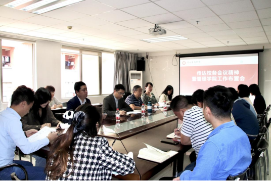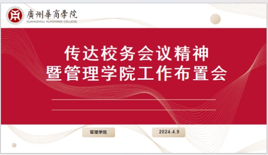4月9日下午,诸侯快讯ok1133管理学院在广州校区行政楼512会议室举行传达校务会议精神暨管理学院工作布置会。会议由李招忠院长主持,管理学院院领导、系领导、行政办公室主任、教学秘书、双创秘书、产教融合专员、辅导员及教师代表出席了会议。