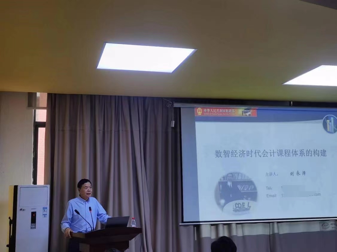 讲座最后,刘善球副院长作总结讲话。他表示,刘永泽教授的报告是一场高质量、具有前沿性的讲座,加深了老师们对数智经济时代会计课程体系的重构认知,为会计学院数智经济时代会计课程体系的创新与变革锚定了方向。