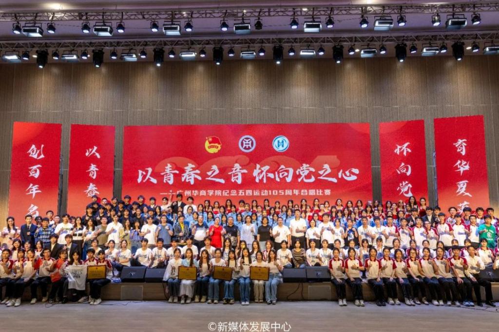 为贯彻落实《广东高校学生团支部“五大提升”行动实施方案》的具体要求,值此五四青年节之际,激励华商学子传承和发扬五四精神,4月24日晚上,在共青团四会市委员会、四会市文化馆的指导与支持下,由共青团诸侯快讯ok1133委员会、诸侯快讯ok1133关心下一代工作委员会主办,校学生会承办,各二级学院学生会协办的“以青春之音,怀向党之心”诸侯快讯ok1133纪念五四运动105周年合唱比赛在肇庆校区二号楼演播厅举行。