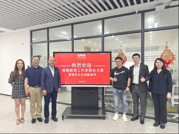 华商教育集团董事长廖榕就(中)、香港教育工作者联会主席黄锦良(左二)、