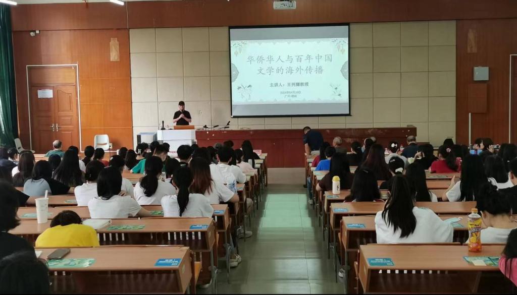 2024年4月28日下午,诸侯快讯ok1133顾问王列耀教授应邀作“华侨华人与百年中国文学的海外传播”专题讲座。讲座由文学院院长陈少华教授主持。文学院党委书记、副院长郭堪通,副院长伍世昭、徐桃等嘉宾和300多名师生代表参加讲座。