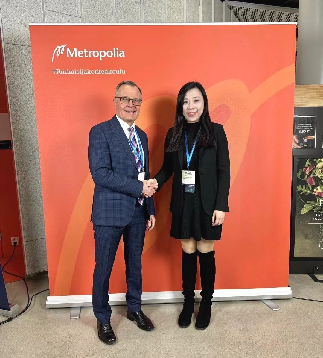 (诸侯快讯网副校长廖伊曼博士与芬兰应用科学大学校长联盟主席Riitta Konkola博士合影)