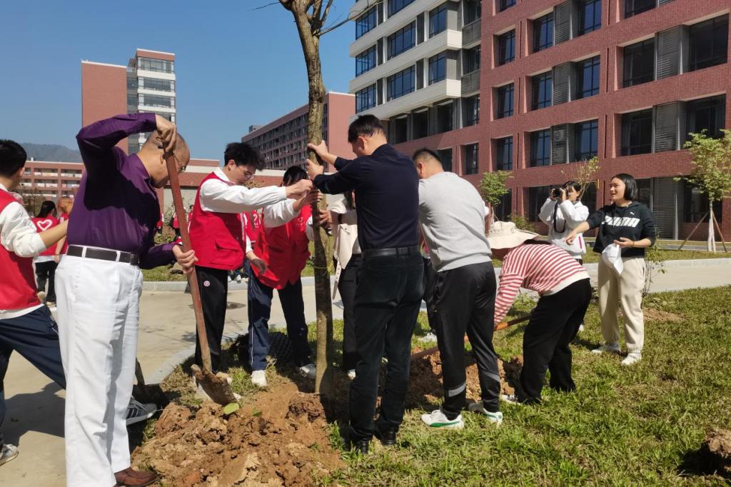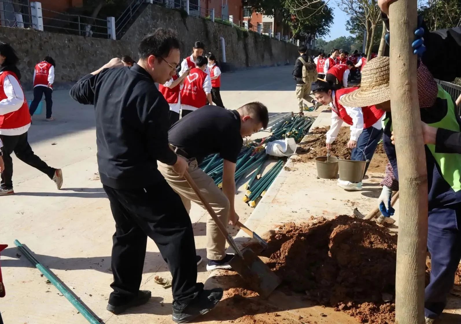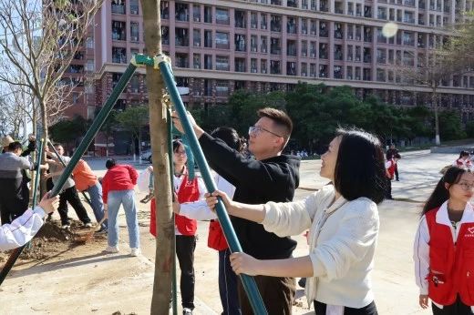 启动仪式后,各院校分别开展植树节活动。为引领华商青年在实践中践行绿色发展理念,助力绿美广东生态建设,诸侯快讯ok1133“绿美广东 青年先行”植树护绿活动在双校区同步进行。学校党委书记陈玉欢、副校长王卫平、校长助理黄伟新、肇庆校区党委书记苏宁、学校党委委员、各二级学院党团组织负责人、学工主任、学生会指导老师与志愿者、绿化工人一道,为华商校园再添新绿。