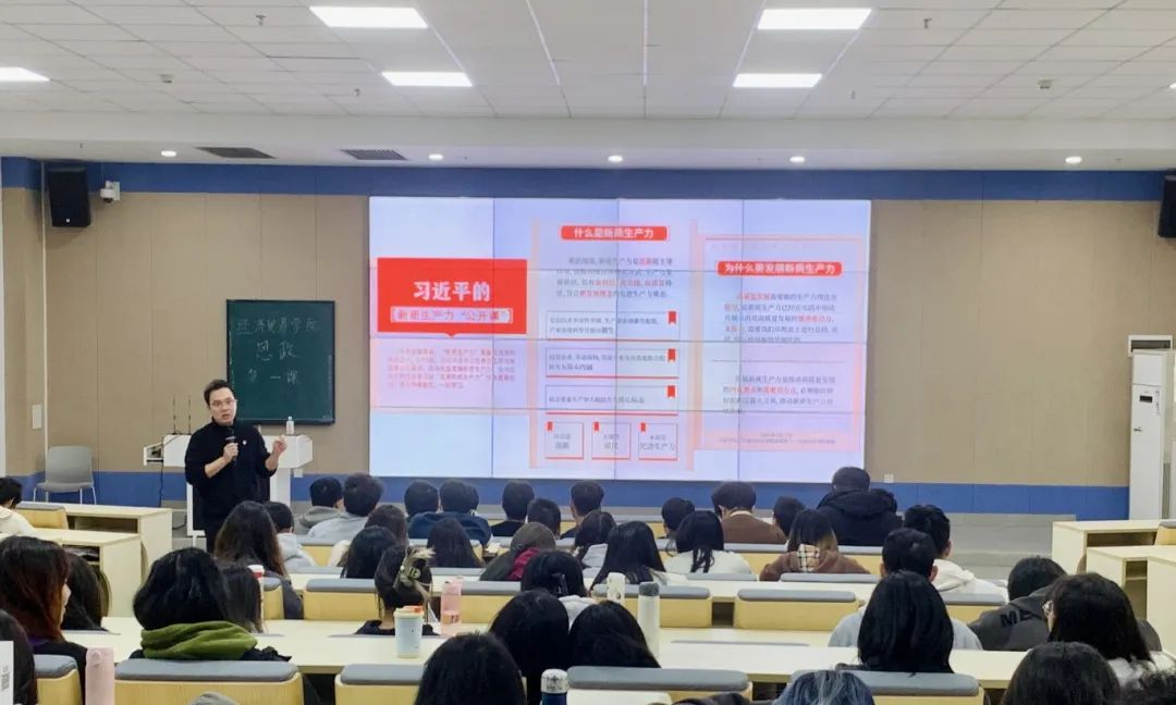 3月8日,经济贸易学院党委副书记宋元跃老师在肇庆校区8号楼109讲授以“起而行之,奋发有为”为主题的思政第一课,2022级、2023级学生共同参加此次课程。