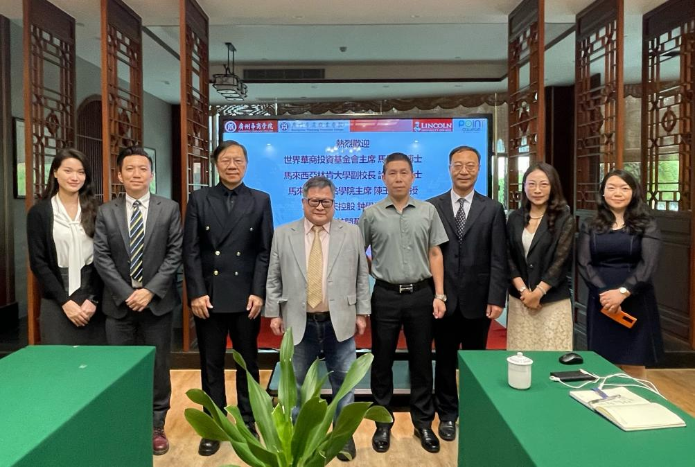 我方和马来西亚林肯大学及亮点学院就未来合作的方面进行了深入探讨。广州华商职业学院与亮点学院达成合作意向并签署了合作备忘录。