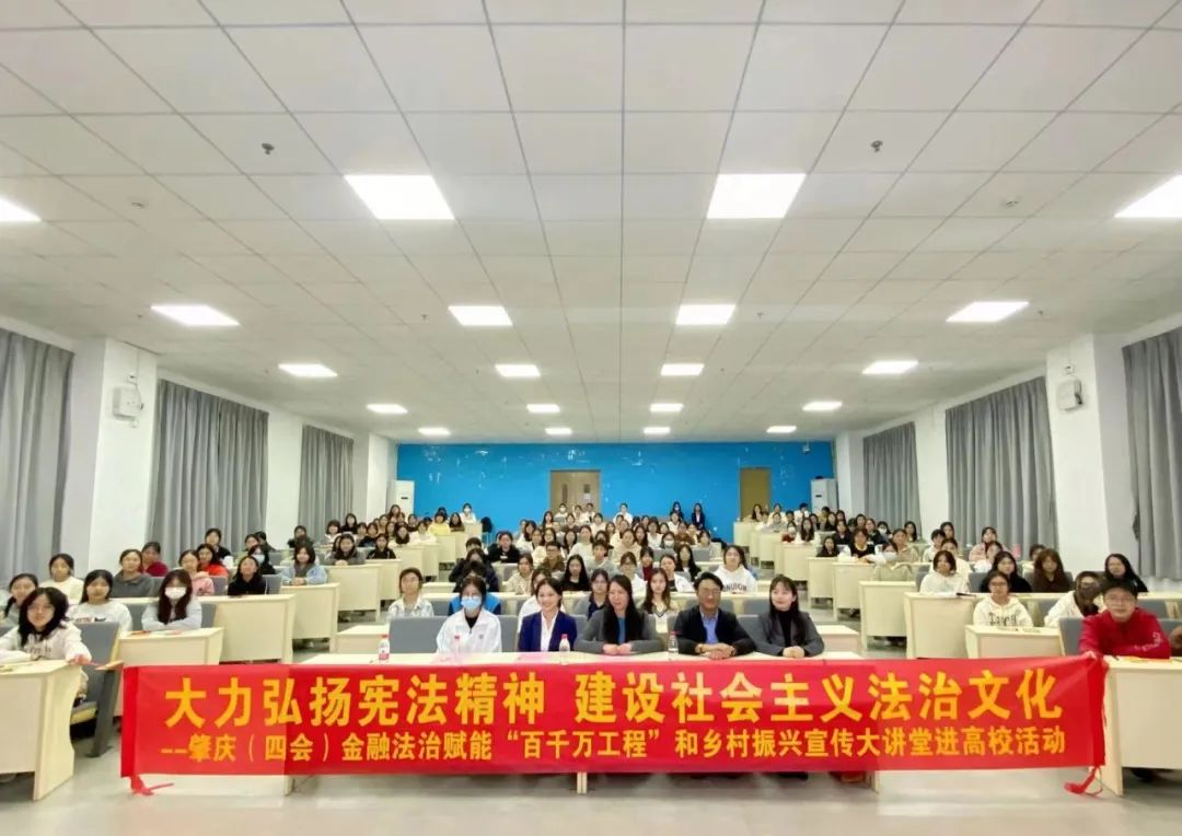 为进一步学习领会习近平新时代中国特色社会主义思想,学习贯彻习近平法治思想和党的二十大精神,加强校地共青团合作共建,在华商青年中营造弘扬宪法精神、维护宪法权威的良好氛围,在学校党委支持下,12月5日,学校团委联合中国人民银行肇庆市分行、肇庆市金融消费权益保护联合会、共青团四会市委员会等多家单位、机构在肇庆校区开展“大力弘扬宪法精神 建设社会主义法治文化”肇庆(四会)金融法治赋能“百千万工程”和乡村振兴宣传大讲堂进高校活动。活动由校团委对外联络中心承办。