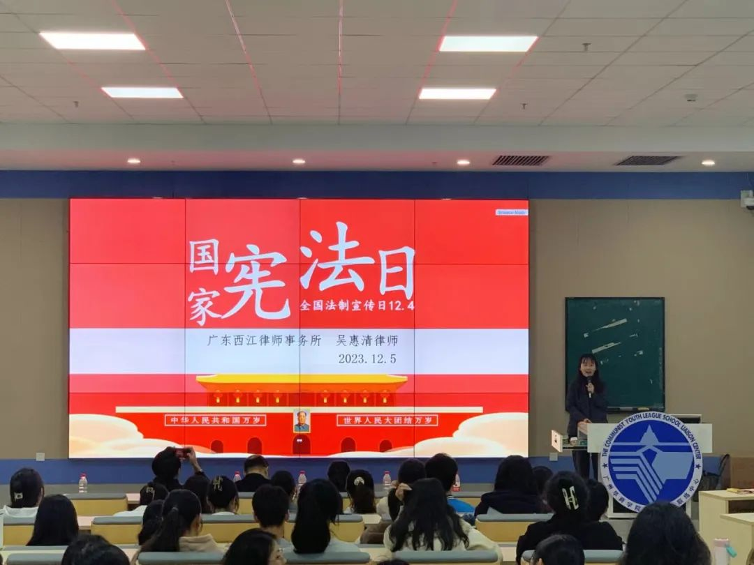 ——社会主义法治文化专题讲堂。12月5日18:00,活动邀请到广东西江律师事务所、广东四会农村商业银行的专业人员为同学们带来《宪法伴我一生》《反洗钱、反诈骗》两个专题讲座,深入浅出地介绍了宪法的基本知识,并结合经济生活中的洗钱与诈骗案例,普及法治知识,教会同学们如何学法懂法,保障自身权益以及了解应尽的义务。
