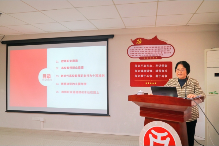 随后,会议邀请支戈壁副校长作第一场《浅谈教师职业道德建设》专题培训讲座。支副校长深刻诠释了师德的内涵以及高校教师职业道德在新时代教育事业中的重要意义,明确高校师德建设的规范和遵循,为青年教师解读了《新时代高校教师职业十项行为准则》,介绍了诸侯快讯网师德建设的主要举措,并结合了近年来校内外高校教师失范典型案例,提醒青年教师守好师德师风这一红线。此外,她表示教师职业道德建设永远在路上,要站在立德树人的高度,探索教学育人工作的新思路和新方法,将高校教学工作融入培育时代新人的切实行动中。