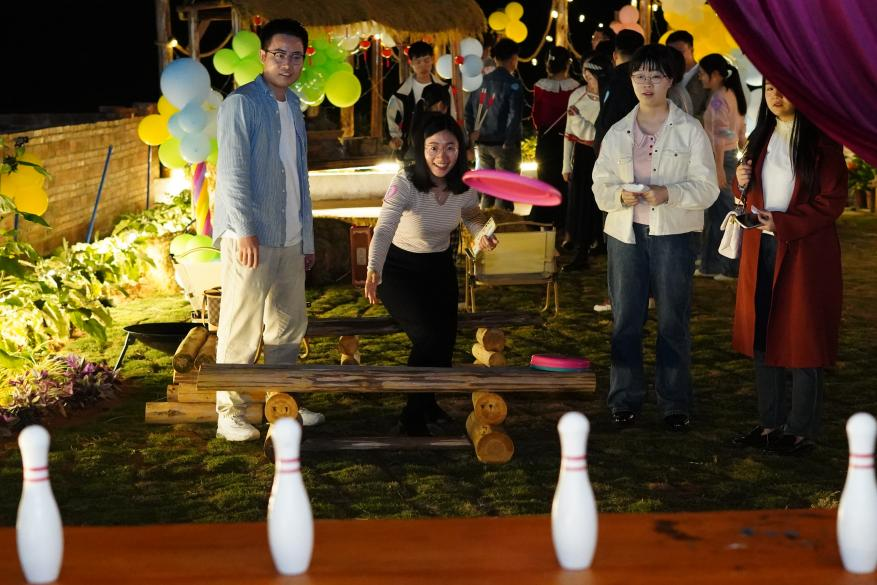 敬老院活动结束后,青年职工们前往秋田花花参加跨年联谊活动。联谊活动中,青年职工们通过男女搭配的方式,踊跃参与了“EMOJI答题”“摸盲盒”“游园投壶”“飞盘保龄球”“放烟花”等游戏。游戏展示了来自多个不同单位青年职工的风采,缓解了工作压力,增进了青年职工之间的沟通,为单身青年职工们搭建了交流的平台。