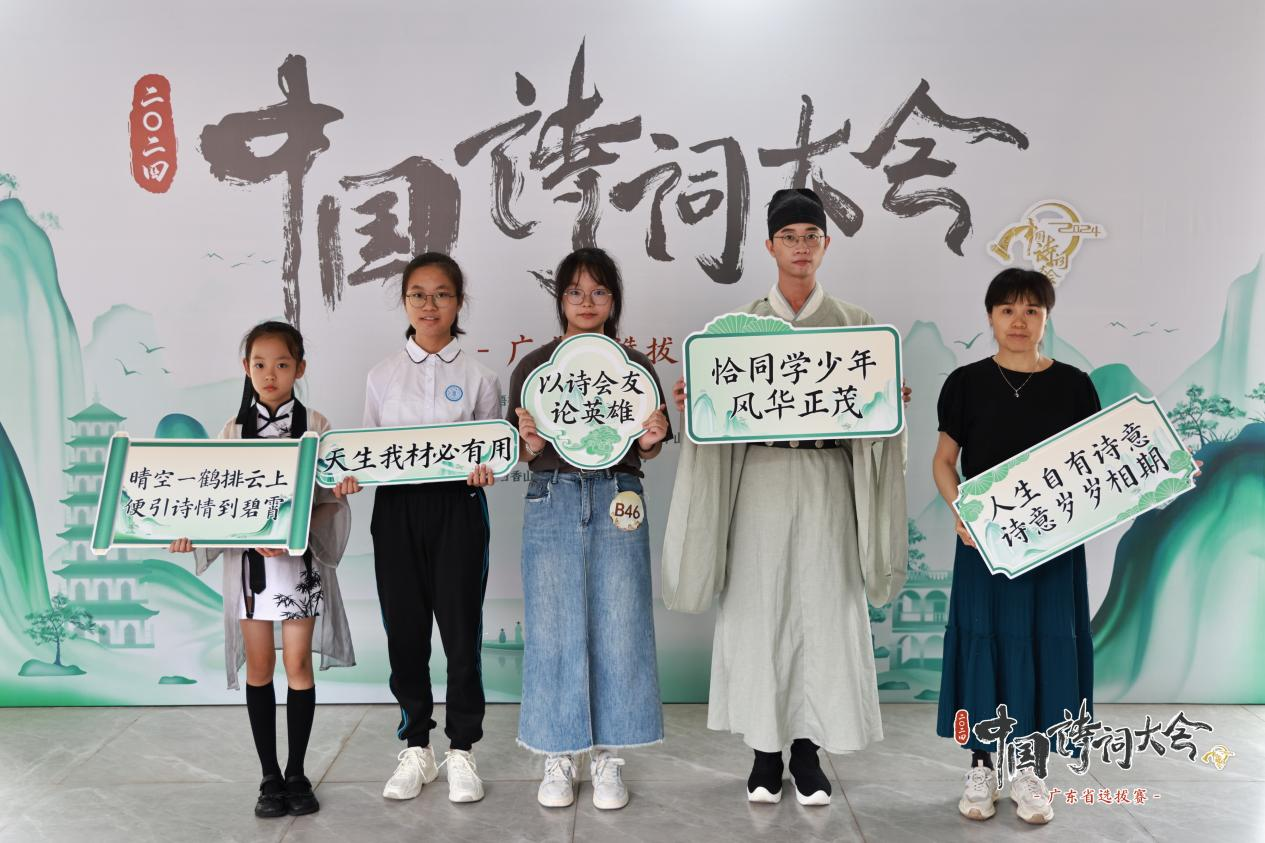 经过广东赛区的层层选拔,郑镇鑫同学从广东赛区200强中脱颖而出,于2023年12月收到中央广播电视总台《2024中国诗词大会》节目录制的邀请,作为线上百人团选手全程参与了2024年1月10期节目的录制。