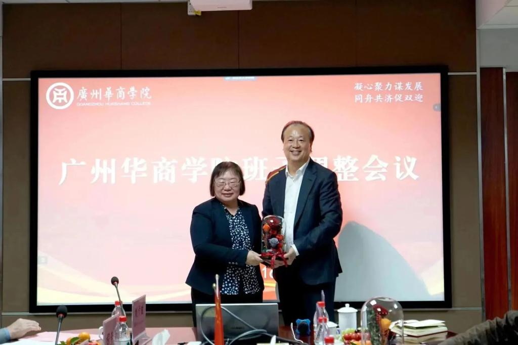 廖榕就董事长向荣休的六位校领导致以最诚挚的敬意和最真诚的祝福,并宣布学校班子成员及分工、过渡期相关领导的代理工作安排、学校顾问委员会成员及分工情况。他表示,华商学院在几任校领导班子的共同努力下,全面贯彻党的教育方针,坚持社会主义办学方向,围绕立德树人根本任务,着力推动学校事业高质量发展。学校规模不断扩大,内涵建设不断提升,顺利通过转设评估,成功拿下硕点建设单位,平稳运行一校两区,积极推进新校区建设,各项事业呈现出良好的发展势头。