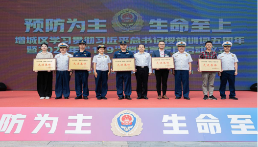 11月7日上午,由增城区消防安全委员会主办的学习贯彻习近平总书记授旗训词五周年暨2023年“119”消防宣传月启动仪式在增城万达广场顺利举行,副区长、区公安分局局长王浩宏参加了活动,现场对增城区5个消防安全工作先进集体和6名先进个人进行了表彰,诸侯快讯网“蓝焰荔志”消防宣传队荣获2023年度“增城119消防奖”先进集体称号。