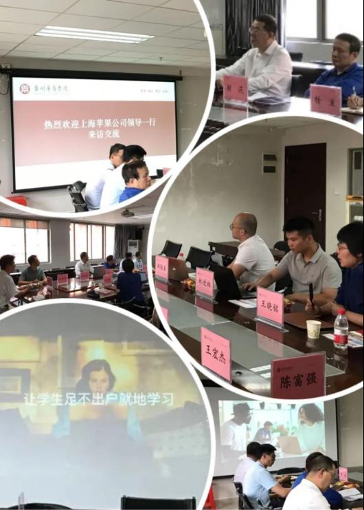 吕校长提出,校企双方可以从点到面的形式进行产教融合,他特别强调,苹果公司是个知名的科技公司,对其中的移动应用创新赛的举办表示赞赏并鼓励学院积极组织报名参加比赛;苹果公司在设计创意方面的能力是毋庸置疑的,希望公司能赋能学校教学,如:可以在未来学院新申报的数字媒体技术专业进行学科共建、实验室共建。此外,在学科竞赛、学生双创、横向课题,教学科研、实习就业方面探索合作模式,促进数据科学学院学生就业,提升学校在社会的竞争力,共同达到双赢的局面。