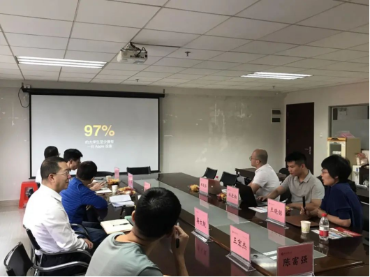 交流会上,王经理首先介绍了苹果教育近年来取得的喜人成绩,包括创办的移动应用创新赛(中国高校计算机大赛)获教育部批准,在全国200多所高校创办了iClub开发俱乐部,在国内60余所高校创办iCreate创意设计俱乐部。还详细介绍了IOS课程体系及可能与学院进行产教研的合作项目意向。