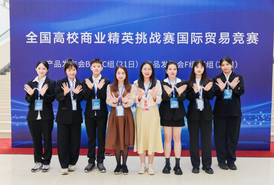 经济贸易学院选派周敏仪老师和张嘉欣老师指导并带队参赛。比赛考核了对外贸易谈判与磋商能力、专业英语表达能力、国际商务礼仪、外贸实务熟练程度、外贸参展商业策划能力、展位设计与商品成列等专业技能。经过一个多月紧张的准备和为期五天激烈的现场比拼,经济贸易学院参赛团队(参赛学生:陈柳蓉、朱玉清、刘柃麟、莫晓琳、余森炫、王涵)荣获了全国二等奖。