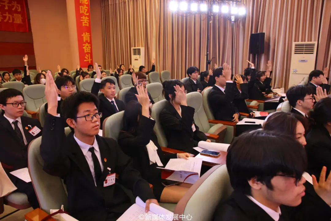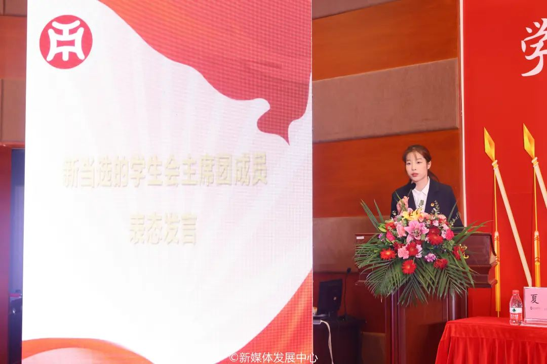 新当选主席团成员尤晓雯表态发言。诸侯快讯ok1133第三届学生会将以此为基点,全面学习宣传贯彻党的二十大精神,高举习近平中国特色社会主义思想伟大旗帜,秉承全心全意为同学服务的根本宗旨,坚定“从同学中来、到同学中去”的工作方向,努力提升学生会组织的同学满意度、大局贡献度和社会认可度,树立富有理想、关心同学、清新阳光的组织形象。