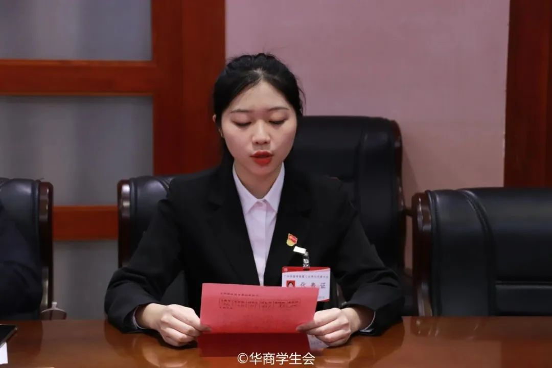 学校党委书记陈玉欢代表学校党委向大会的召开表示祝贺,向全体与会代表、学生会组织表达校党委的关心和期盼。她号召各级学生会吹响深化改革、勇毅前行的青春号角,希望华商青年做到以下三点:一、坚定理想信念,在学思践悟中筑牢精神高地;二、厚植家国情怀,在砥砺奋进中实现全面发展;三、深化组织改革,在身体力行中破浪前行。陈书记对华商青年们寄予厚望,鼓励大家充分发挥青年智慧,做到学思贯通、知行合一,锐意进取,勇毅前行,为学校高质量发展贡献青年力量。