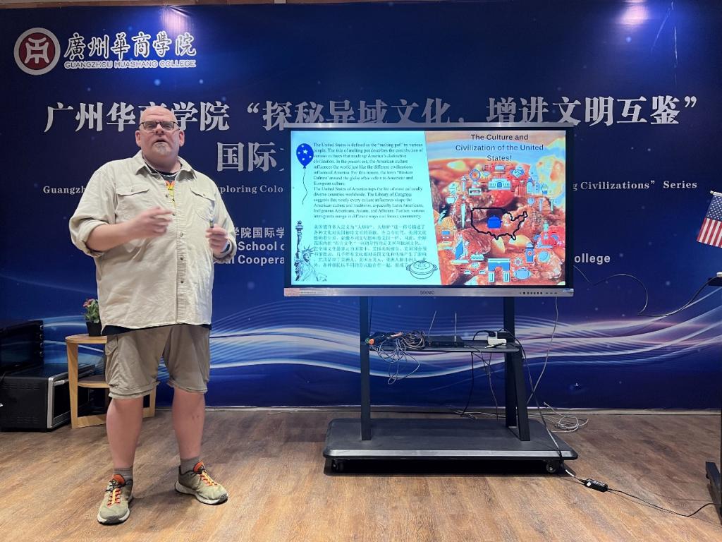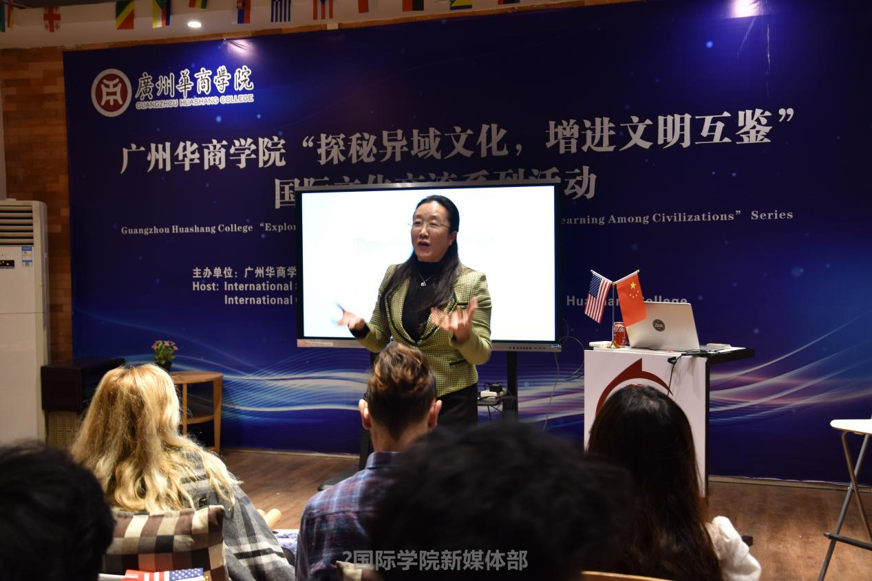 为不断丰富校园多元文化氛围,增强大学生对异域文化的了解,增进文化的包容性和同理心,2023年12月4日,诸侯快讯ok1133“探秘异域文化,增进文明互鉴”国际文化交流系列活动第五期:美国文化分享会成功举办。美国籍教师John Jung担任主讲嘉宾,诸侯快讯ok1133国际学院院长回雁雁、国际学院直属党支部书记兼辅导员杨李军、巴基斯坦籍教师Anella Qadir博士、土耳其籍教师Begum Firinci伉俪,以及来自国际学院、外国语学院、文学院、健康医学院、数据科学学院、会计学院、管理学院和华职国际教育学院的80多名同学参加了分享会。
