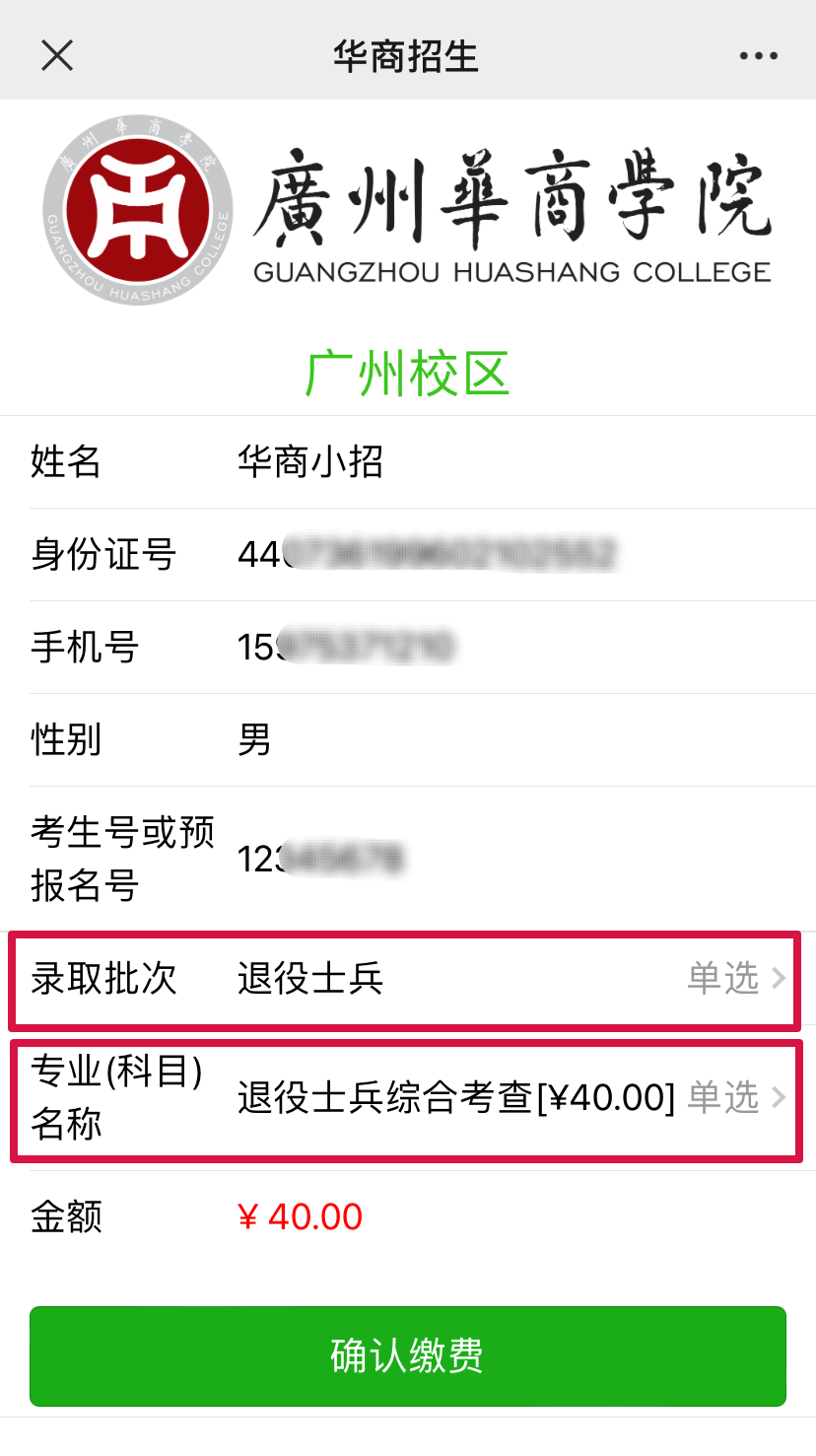 方式2. 进入“诸侯快讯ok1133招生办公众号”,选择菜单栏“招生资讯”—“报考费”;进入缴费页面;准确填写个人信息,点击“下一步”;选择退役士兵批次及科目;核对相应金额,无误后点击“确认缴费”即可。
