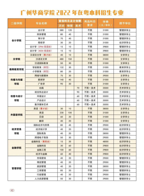 2022年诸侯快讯ok1133(原广东财经大学华商学院)面向广东、安徽、江西、河南、广西、海南、云南、新疆等8个省区招收普通高考生,招生专业45个,招生计划5800人,其中广东省5608人,省外192人。