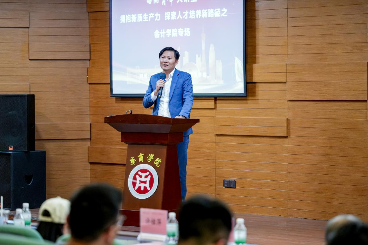 他表示,会计学院始终倡导“业财融合、跨界赋能”,通过数智化课程重构、校企深度合作、传统文化与科技融合的育人场景,培育既懂数据洞察又具商业伦理、既精专业又通人文的复合型人才。姚院长指出,期待今日的思维碰撞,能为青年学子点亮一盏灯,为企业与高校协同育人打开一扇门。让我们以智慧为桨,共赴这场生产力跃迁的星辰大海。