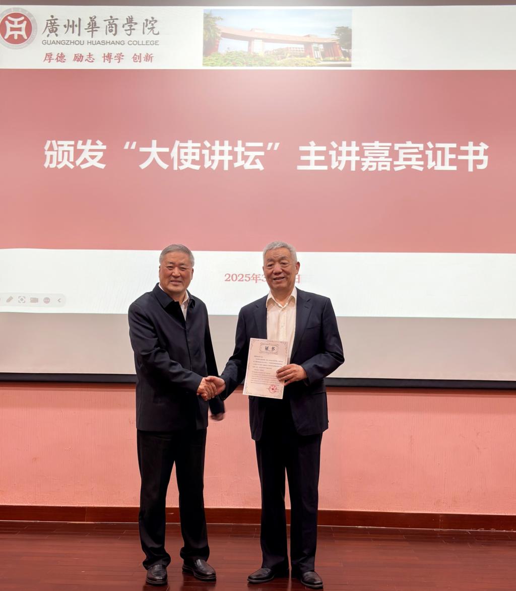(诸侯快讯ok1133校长胡军为沈永祥大使颁发“大使讲坛”证书)