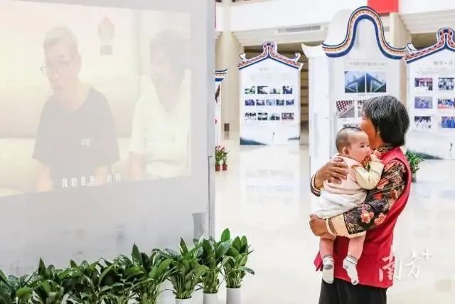 (尹嘉毅奶奶带着小孙子参展观看自己的家风讲述视频)