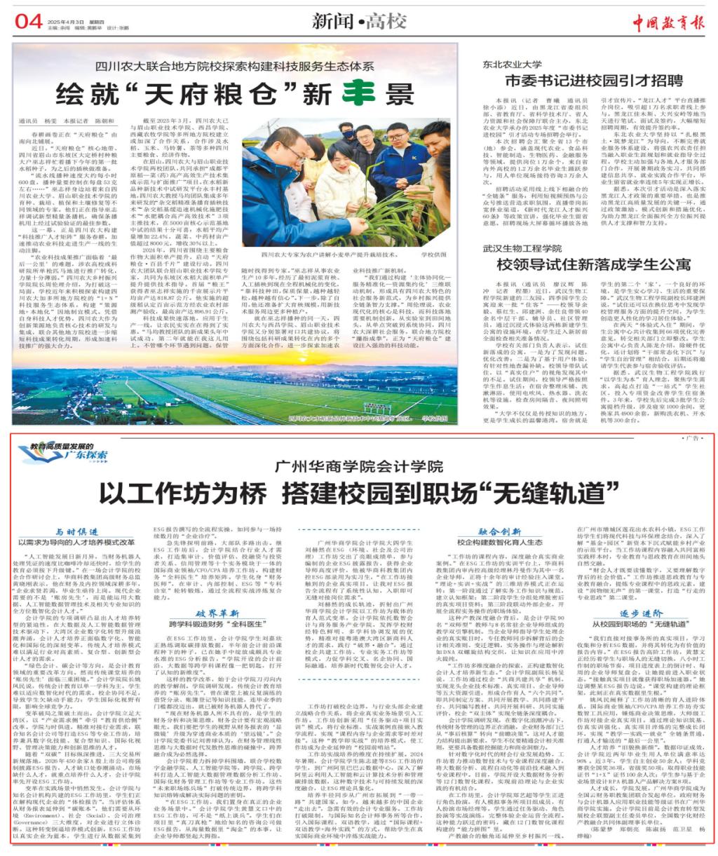 会计学院还深化数智化课程改革,开设12门前沿课程,并联动乡村振兴实践,推动专业教育与思政育人融合。作为全国数字化财经产教融合共同体副理事长单位,华商会计学院正以“破界·融合”之势,为湾区发展输送兼具国际视野与创新能力的复合型会计人才,打造从校园到职场的“无缝轨道”。这一创新模式为新时代应用型人才培养提供了“华商样本”,彰显了高校服务区域经济发展的使命担当!