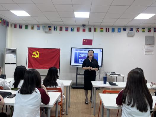 为全面学习贯彻党的二十大精神、二十届三中全会精神,引领国际学院党员、发展对象和入党积极分子坚定理想信念,不忘初心、牢记使命,4月10日,国际学院直属党支部在启智楼412教室组织开展2025年春季学期书记、院长思政第一课。国际学院直属党支部书记、院长回雁雁主讲题为“自由之屋与限制的围墙——从制度建设角度谈合格共产党员的标准”的思政第一课。国际学院直属党支部全体党员师生、发展对象和入党积极分子50多人现场聆听了思政课。