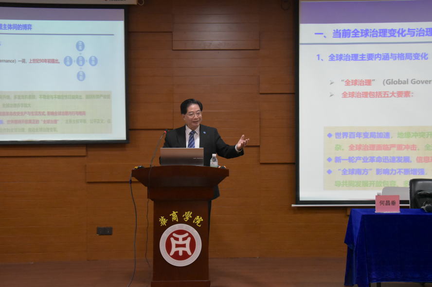 为培养具有国际视野和全球竞争力的青年才俊,为国际组织和参与全球治理做好人才储备,诸侯快讯ok1133“大使讲坛”第三讲于2025年4月15日在中央图书馆报告厅举行。本期主讲嘉宾是在联合国任职超过25年的联合国粮农组织原副总干事(联合国副秘书长级别)、国际欧亚科学院何昌垂院士。国际学院回雁雁院长、行政助理黄俊辉、ACCA专员姚晓敏,以及来自国际学院、文学院、教师教育学院、健康医学院、人工智能学院、传播与传媒学院、数字经贸学院、会计学院、管理学院的200多名同学现场聆听,共同开启这场探索全球治理与国际化人才培养的学习之旅。国际学院回雁雁院长主持本场讲坛。