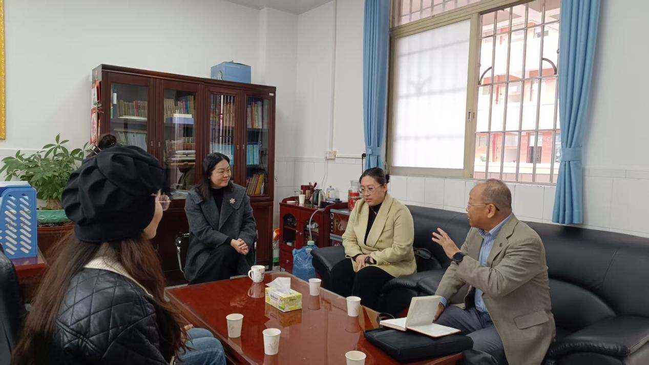 随后,考察团队前往永宁街中心小学。朱校长热情接待了考察团队,并分享了学校在实习生培养方面的经验。朱校长表示,学校建立了“老教师助力新教师”的模式,为每位实习生配备了“一对一”的指导老师,帮助他们快速成长。王符主任对此模式给予高度评价,并期待未来开展更多合作。
