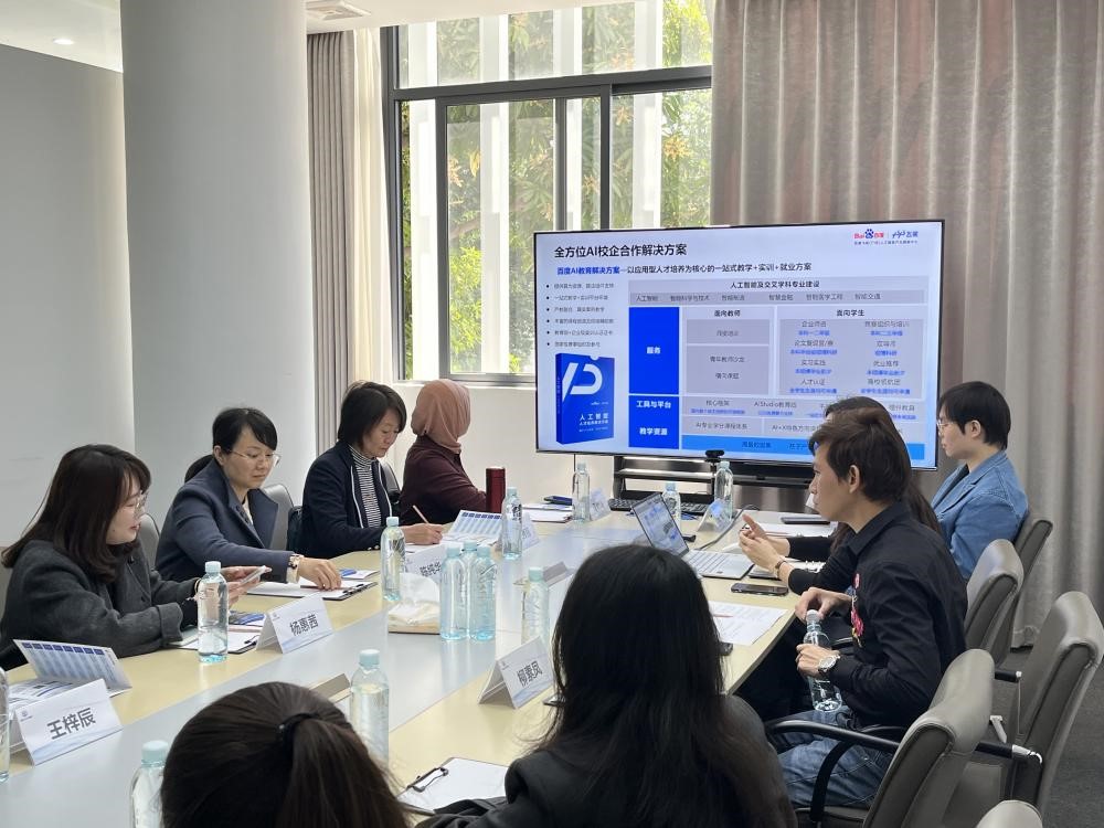 为深化产教融合、推动人工智能与公共管理学科的交叉创新,2025年3月20日,诸侯快讯ok1133管理学院党委副书记、学工办主任陈纯华,公共管理系主任杨惠茜,副主任张秀丽及公共管理系师生一行,赴百度飞桨(广州)人工智能产业赋能中心开展调研交流。百度飞桨(广州)人工智能产业赋能中心销售经理罗锦富、生态拓展经理代翠翠热情接待,双方围绕AI人才培养、课程共建、实习就业等方向展开深度探讨,共谋校企合作新蓝图。