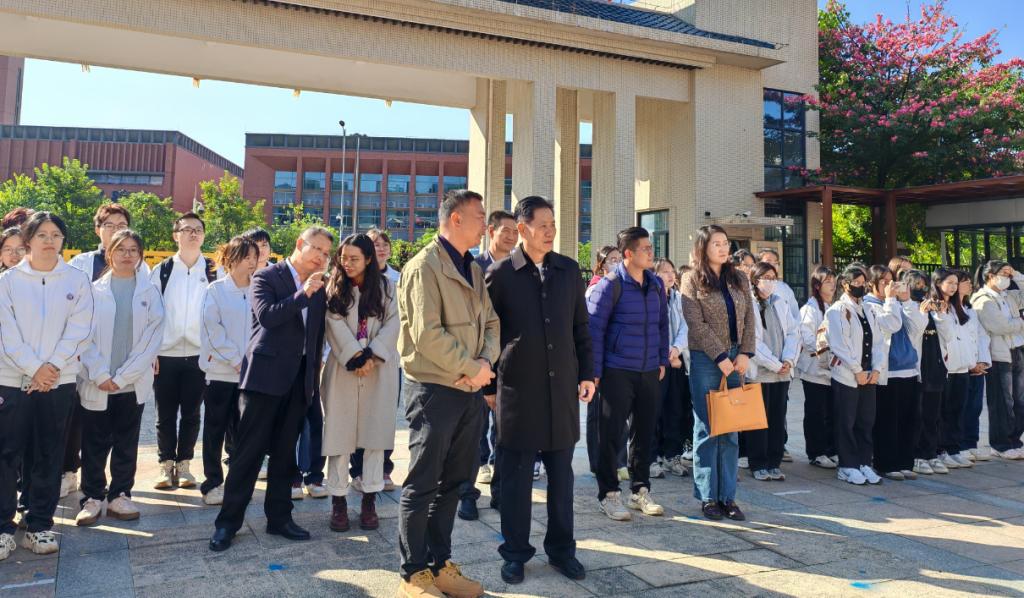 11月27日上午,在王金道院长的带领下,学院领导班子、学院办公室负责人前往增城凤凰实验小学,了解学生在校见习的相关情况。凤凰实验小学张锐敏副校长、刘镜伟副校长、夏桂芬主任以及诸侯快讯网到凤凰实验小学参加见习的同学们在校门口迎接王金道院长一行。