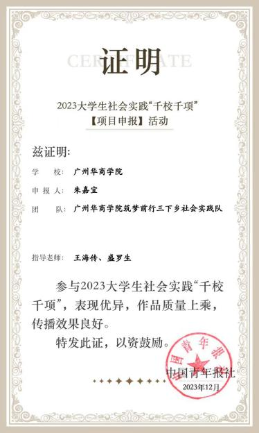 2024年,王海传教授指导“筑梦前行”社会实践团队以“科教下乡,助力白垢振兴”为主题,于5月、7月、9月在广东省肇庆市白垢镇开展志愿服务活动。活动内容共有6项:支教、墙绘、党课宣讲、公益捐赠、联谊助农、回访留守老人等。其中,支教受教的小学生达86人,支教时长为15天。团队活动事迹获得南方日报、西江日报、封开发布、封开县融媒体中心、封开县融媒体中心视频号、封开共青团、网易新闻、大学生云报等传媒广泛报道。南方日报对其活动事迹进行展示,展示数据及评价为:累计阅读量23000+,公众号推文阅读量8900+,抖音号视频播放量44000+,微信视频号播放量10000+,累计点赞量5700+;此次实践活动为白垢镇的教育、乡村风貌、农业发展和文化宣传带来积极影响,展现了青年学子助力乡村振兴的担当与作为。日前,王海传教授获评2024年诸侯快讯ok1133暑期社会实践活动“优秀指导老师”称号,所指导的团队获评诸侯快讯ok1133“优秀团队”称号,实践队队长朱嘉宜、队员吴曦获评“优秀个人”称号;团队作品入选中国青年报社2024年“千校千项”工程(全校5项作品入选)。