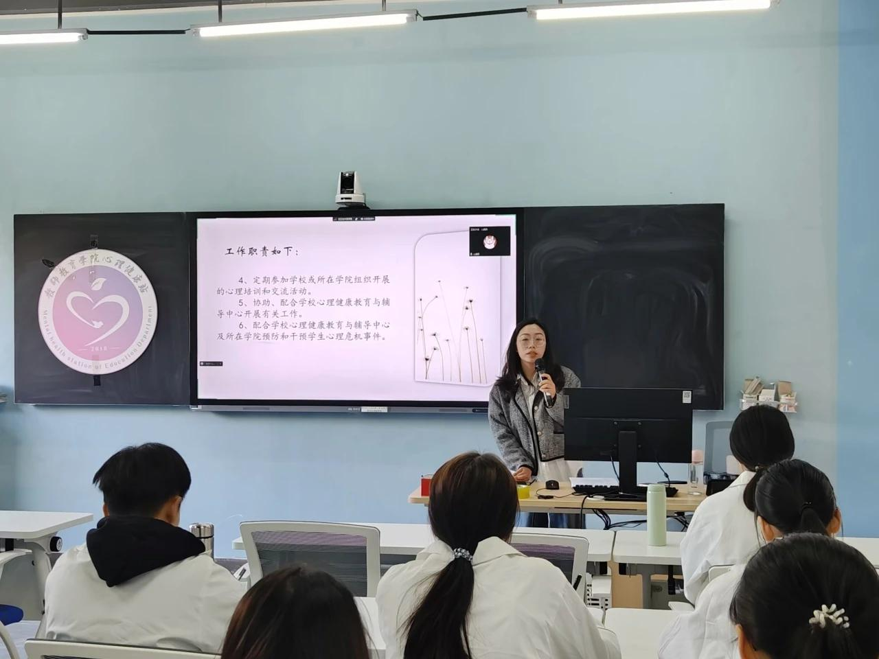 活动伊始,秦佳佳老师详细解读了心理委员的多重职责以及工作重点,涵盖了从日常心理健康知识宣传,到敏锐关注班级同学心理状况,再到深入了解观察本班同学心理动态的全流程工作要点。
