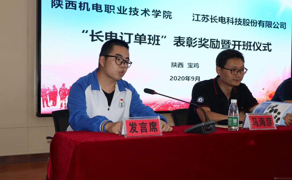 李小曼老师作为我校2020、2021届“长电订单班”辅导员,关心爱护每一位学生,在会议中作为辅导员代表发言,向“长电订单班”学生提出具体的寄托,希望同学们多读书、心怀感恩,健康成长。
