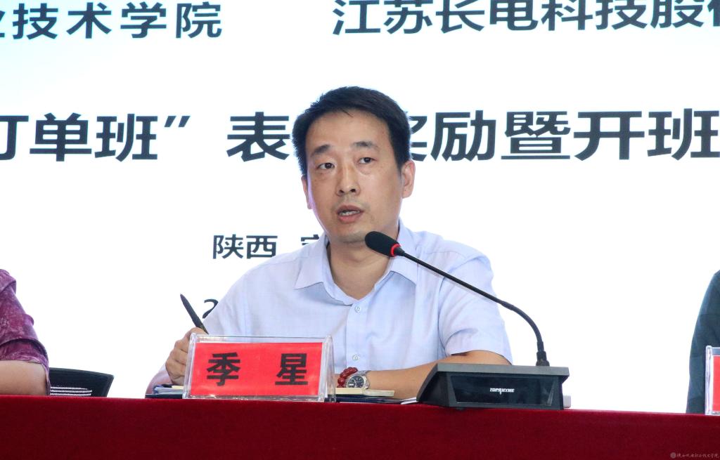 9月17日,我校隆重召开“长电订单班”表彰暨开班仪式。江苏长电科技股份有限公司(以下简称长电科技)人事部校企合作专案经理季星、BEAT365官网副院长徐圣月、电子与信息学院院长姜有奇、智能制造学院副院长马海彦及2020届、2021届“长电订单班”辅导员、2021届“长电订单班”学生参会。会议由校企合作处副处长田正本主持。